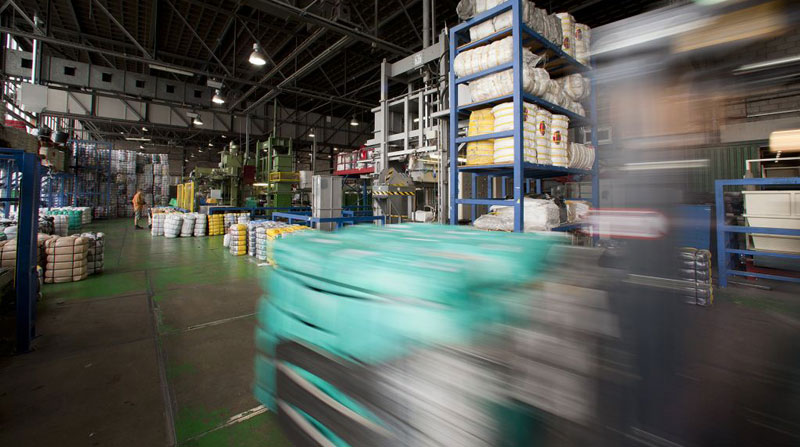 De plastic zakken en kapzakken worden in de productieloods dichtgemaakt en op voorraad gezet. De balen worden in een aparte loods geperst. Gebotex heeft 2 perssystemen voor kleine balen en 2 persen voor grote balen.